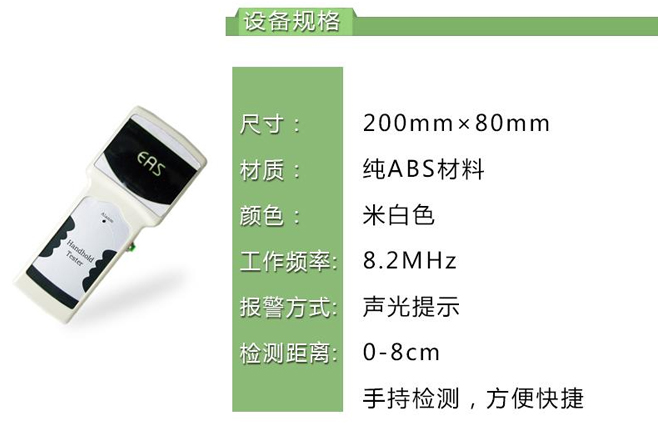 用于檢測聲磁58k硬標簽DR軟標簽等,能檢測各種商品防盜軟,硬標簽和防盜綁帶。適用于超市,箱包店,玩具店,醫(yī)藥店,連鎖店,服裝店的查看。在不能搜身的前提下,禮貌地運用手持防盜檢測儀,近距離查看客戶,可防止發(fā)生意外及官司膠葛,有利于維護貴公司的形象和信譽。